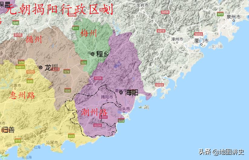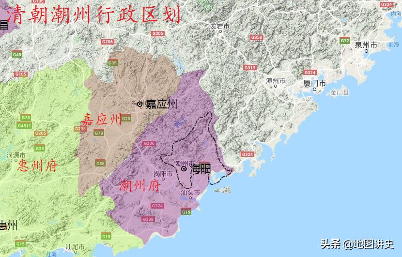 2、潮州地处中国南疆,广东省东部,位于韩江中下游,东与福建省诏安县、平和县交界, 西与广东省揭阳市接壤,北连梅州市丰顺县、大埔县,南临南海并通汕头市。
