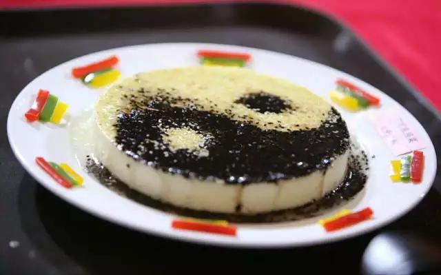 是一道养生菜品,其创作灵感来源于太极精髓——阴阳结合,天人合一。蕴含养生之道,其味香甜可口,老少皆宜。主要原材料为太极拳的发源地即山药的原产地——河南温县。山药乃山中之药,食中之王。